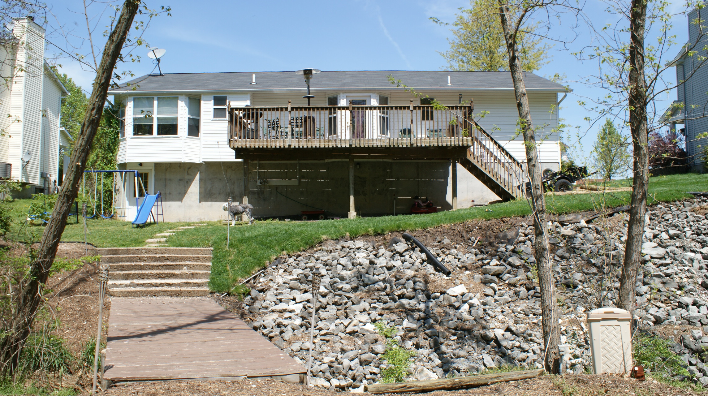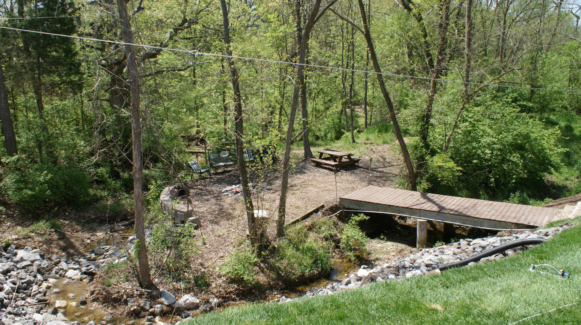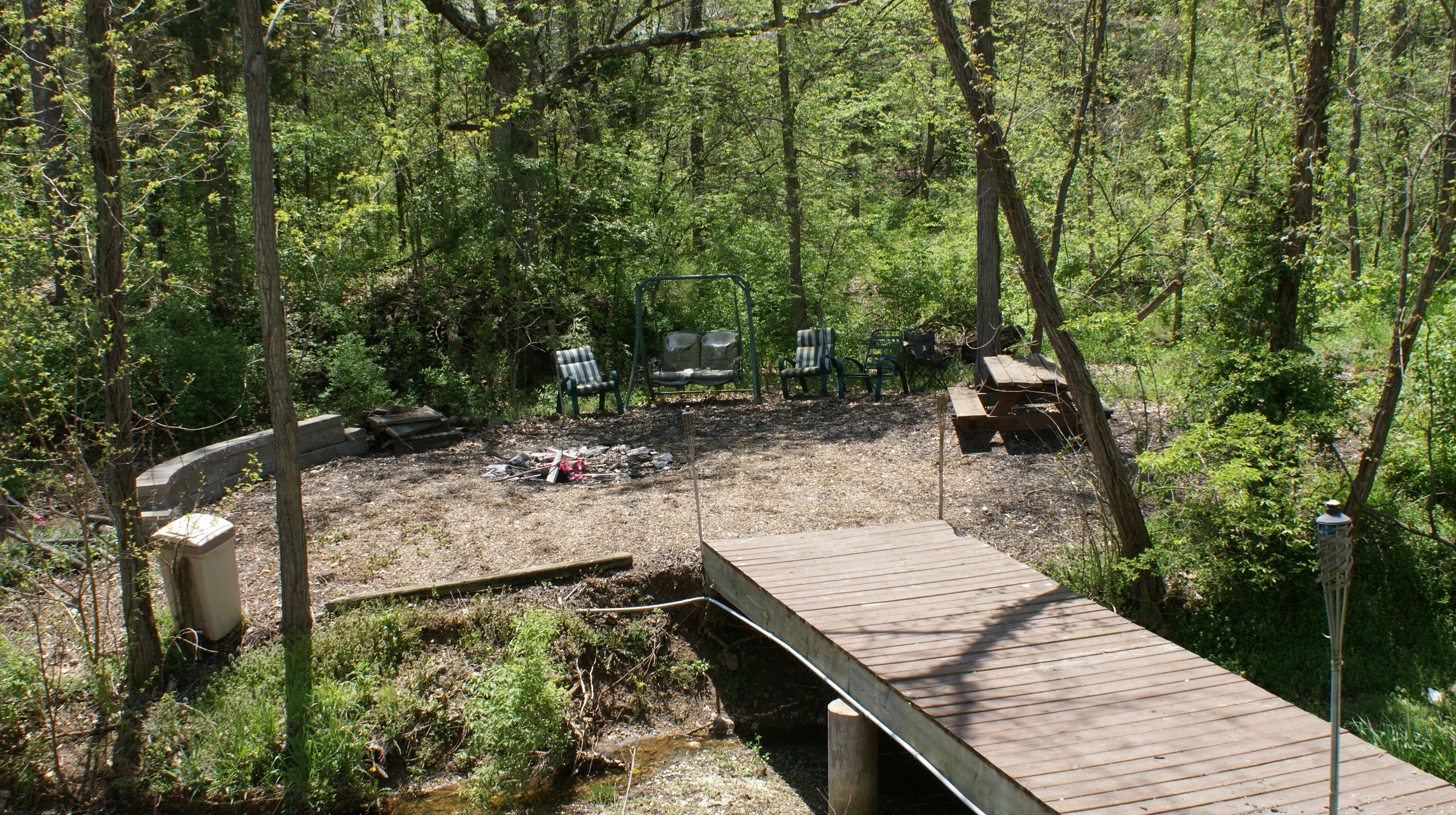 The home also has a new roof installed in 2010. ALSO PROTECTED BY ALARM SYSTEM. The home is situated in a very nice neighborhood & backs to woods w/ an amazing backyard set up. The 24’x12′ deck over looks the wooded creek with a 6’x22′ bridge that crosses over into a mulched bonfire set up with picnic area and seating for enjoying those outside evenings.