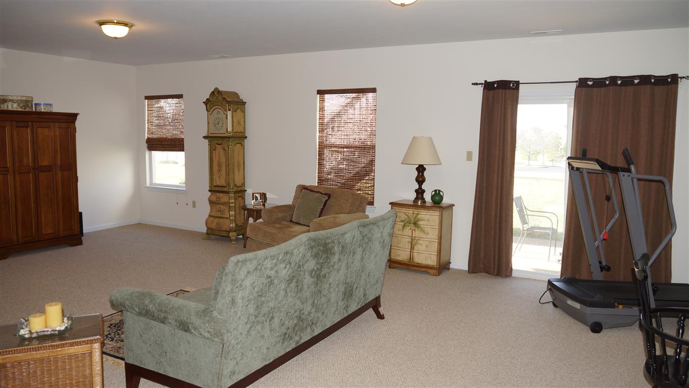You will also find vaulted ceilings, 9 foot ceiling, beautiful enclosed porch overlooking common area and pool, security system, media package, partially finished walk-out lower level with wet bar and a full bath, huge family/rec room, and a bedroom, still leaving plenty of storage.